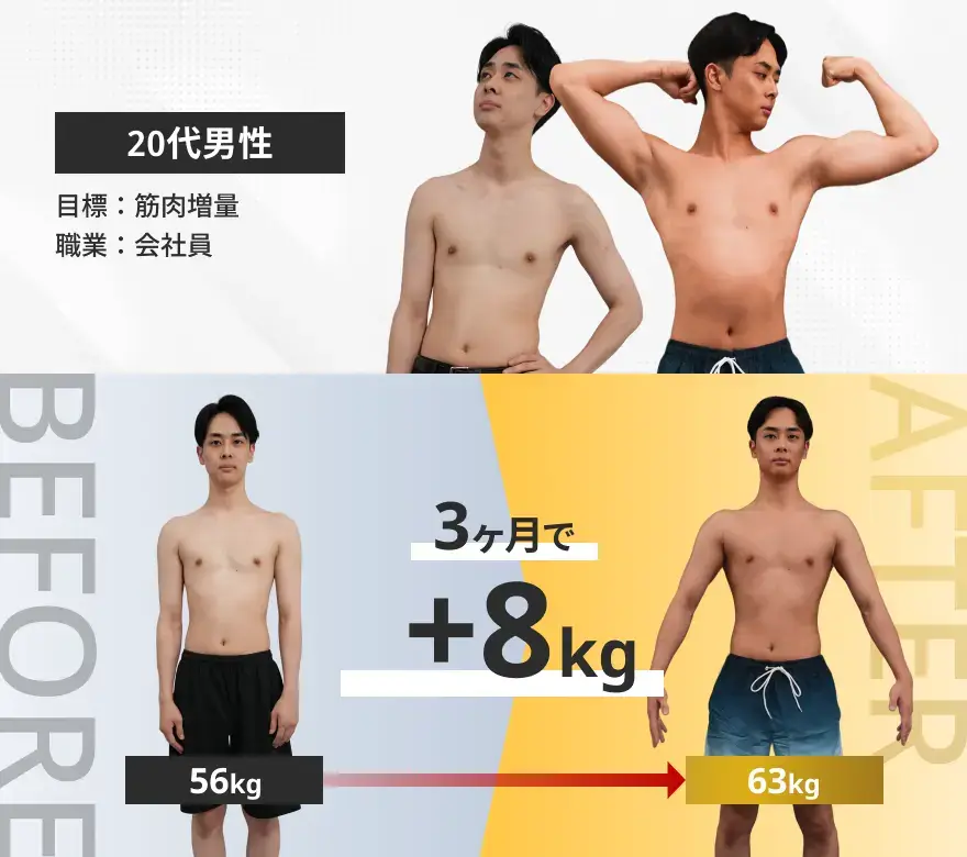 トレーニング(約60分)毎日の食事管理水ウェア、タオル貸し出しBCAAチャット機能利用権プロテインロッカー貸し出し |