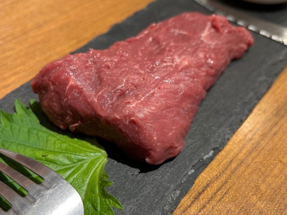 一見するとシンプルな赤身の塊ですが、これこそが馬肉のポテンシャルをダイレクトに味わえるメニュー。