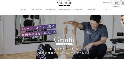 「グランフィット安城店」は、愛知県安城市のJR安城駅から徒歩1分という好立地に位置するパーソナルトレーニングジムです。