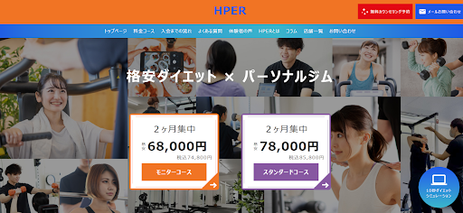 駅前筋肉留学GO安城店は週1回2ヶ月で86,400円、HPERは2ヶ月全16回で85,800円と手頃な価格設定です。