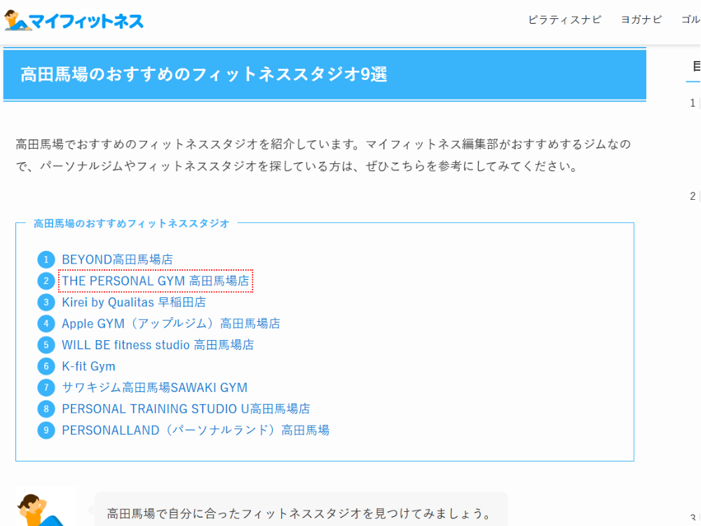 【マイフィットネス】様のサイトにTHE PERSONAL GYM高田馬場店をご紹介していただきました!