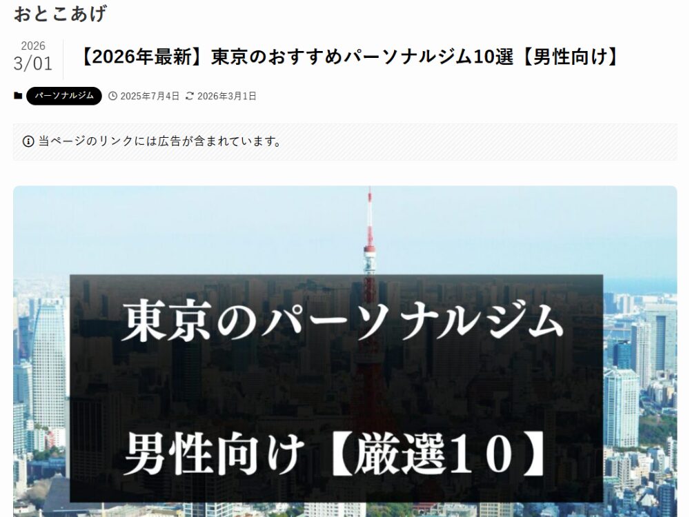 こちらは、東京の男性向けのパーソナルジム情報を分かりやすくまとめて発信している、ジム選び特化型の情報サイトになります!