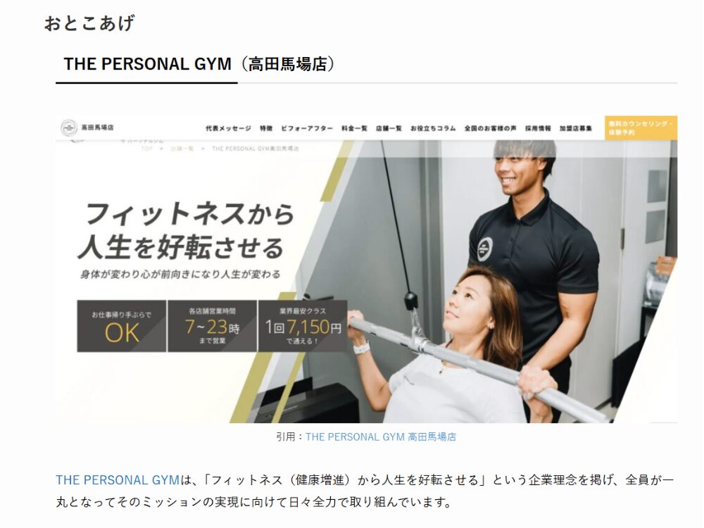 今回は「おとこあげ」様にて、THE PERSONAL GYM高田馬場店を紹介していただいたご報告でした🙌