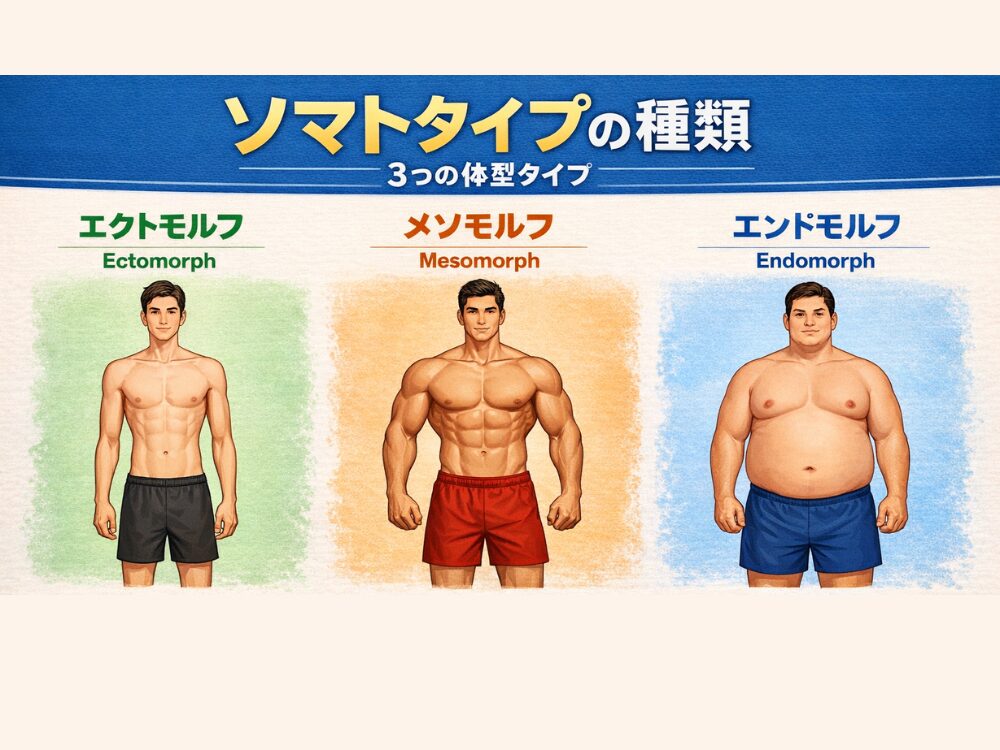 ソマトタイプとは、人間の体質を3つの型(エクトモルフ・メソモルフ・エンドモルフ)に分類する考え方です。