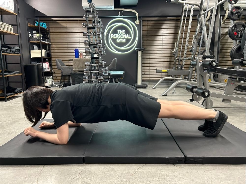 プランクは、体幹(腹筋・背筋)を鍛えることで身体を一直線に保つ力を養うトレーニングです。