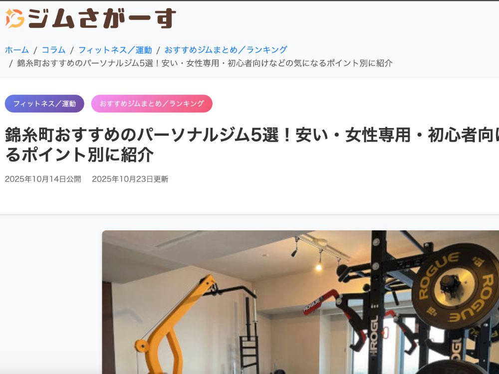 本記事ではジムさがーす様に紹介いただいた記事と特徴などご紹介させていただきます!