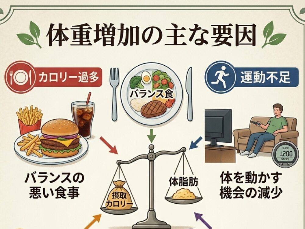 エストロゲンが減少し、プロゲステロンが増えることで食欲が強まりやすいです。 特に甘いものや塩分の多いものが欲しくなり、血糖値が不安定になるため、つい食べ過ぎてしまいます。 基礎代謝は少し上がる傾向がありますが、摂取量が上回ると体重が増えやすくなります。