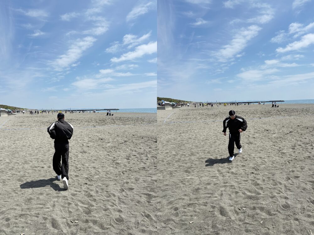 そこで活用したいのが、平塚海岸の砂浜です。アスファルトの上ではサボっていた「お尻(大臀筋)」を、砂浜は強制的に叩き起こしてくれます。