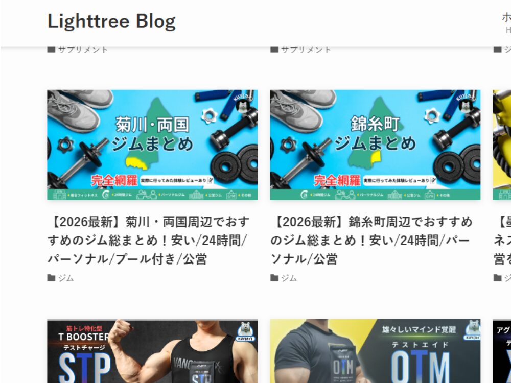 Lighttree Blog様はトレーニング関連の情報やサプリメントレビューなどを発信するウェブサイトです。トレーニング知識、ダイエットや糖質制限、腸活といった健康情報、そしてプロテインやトレーニングギアのレビューを中心に、幅広いコンテンツを提供しています。