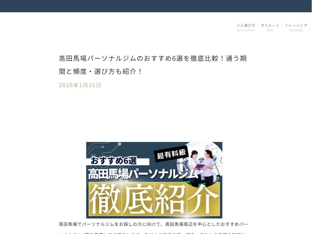 パーソナルジムをお探しの方に向けて、エリア別におすすめのパーソナルジムをご紹介されています。今回は高田馬場周辺を中心としたおすすめパーソナルジム4選を厳選して当店をご紹介いただきました。各ジムの料金体系、特色、アクセス情報を詳細に比較検討し、一人一人の目的と予算に最適な選択肢を見つけられるよう情報をまとめられています。ダイエット、ボディメイク、健康維持など、それぞれの目標に応じたジム選びのポイントから、効果的な通い方、失敗しない選び方まで、パーソナルジム選びに必要な情報を網羅的に解説されています!!