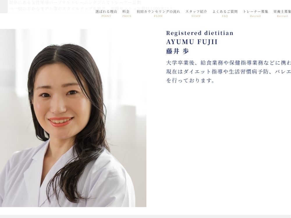 実績ある経験豊富なトレーナーによるマンツーマン指導:モデルさん御用達の某恵比寿パーソナルジムや大手女性専用パーソナルジムでのトレーナー経験から女性や男性のスタイルアップから女性の身体に対しての効果的なトレーニングをご提供されています。