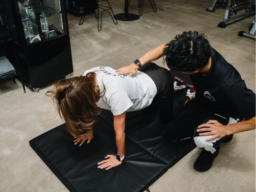 パーソナルジムでは、トレーニングを通して立ち方・座り方・動き方まで含めて指導を行います!マンツーマンで行うので初心者の方や女性でも安心してトレーニングを行い姿勢改善を目指せます(^^♪