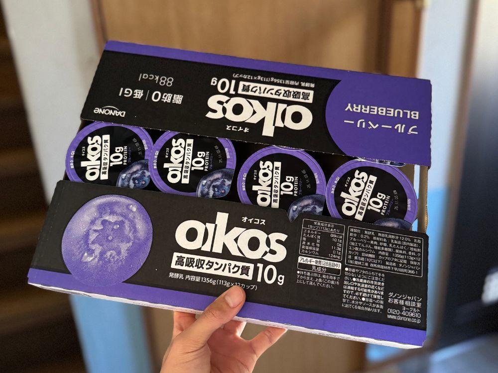 次に定番の オイコスヨーグルト。今回はブルーベリー味をまとめ買いしました。