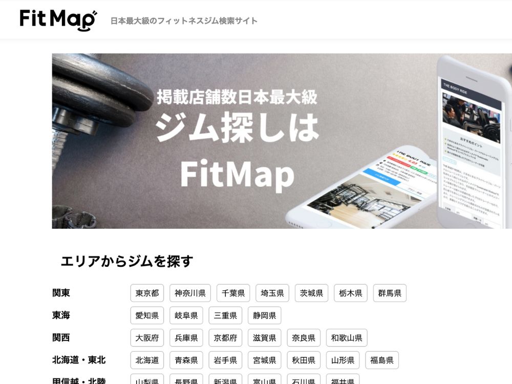 Fit Map様は、日本最大級のフィットネスジム検索サイトになっており、エリアや特徴から「あなたにピッタリのジムを」見つけ出すことができます。