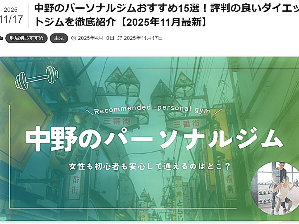 中野のパーソナルジムおすすめ15選!評判の良いダイエットジムを徹底紹介【2025年11月最新】