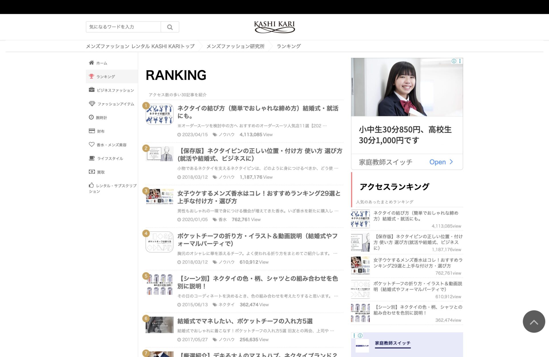 KASHI KARI様は、メンズファッションに関する情報を軸にしながらも、単なるアイテム紹介にとどまらず、「どうすれば男性の印象がより良くなるか」という視点でコンテンツを展開されているメディアです。