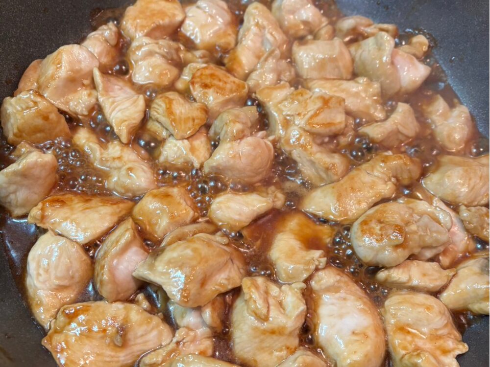 こちらは作っている途中ですが、味付けは醤油大さじ2、みりん大さじ1、料理酒大さじ1