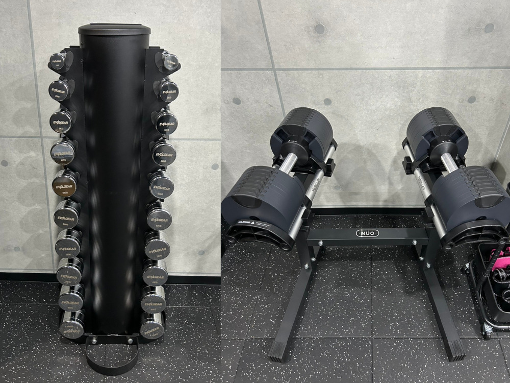 ショルダープレス(肩)・ダンベルフライ(胸)・ランジ(脚)など、上半身から下半身まで多様なトレーニングに対応!
