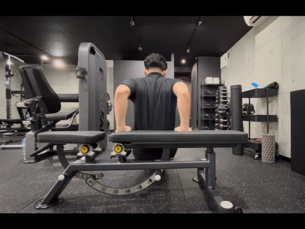 ベンチディップスで土台を作り、ゆっくり丁寧にディップスへ移行するだけで、腕の裏側の丸み・張り・厚みが別次元に変わります。