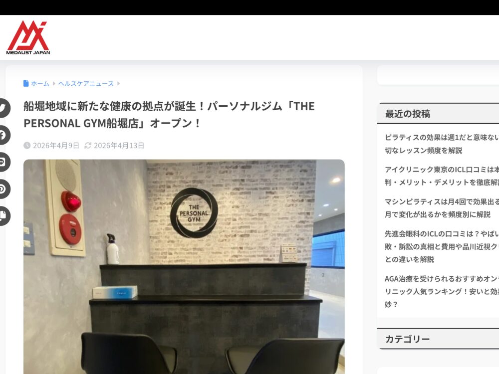 MEDALIST JAPAN様のコラムでは、全国のパーソナルジムを分かりやすく比較・紹介しており、これからジム選びをする方にとって参考になる内容が掲載されています。