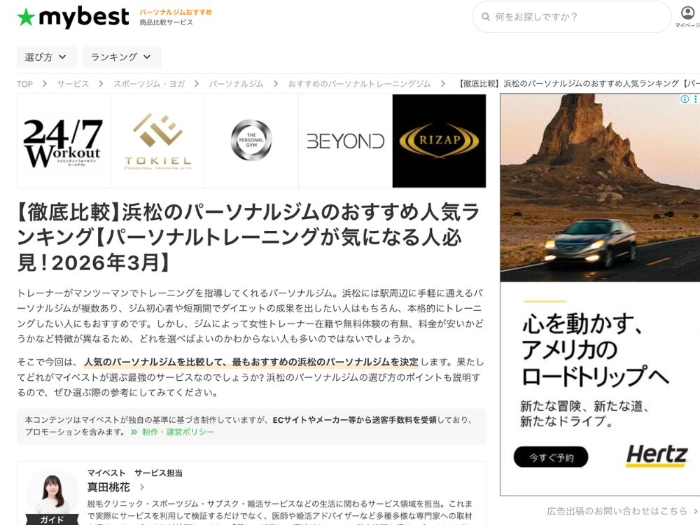 この度[mybest]様の記事にTHE PERSONAL GYM浜松店が紹介されました!