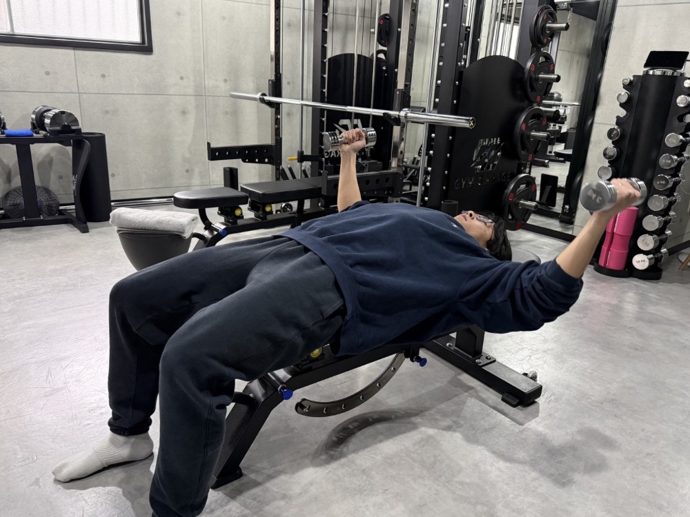今回の筋トレは「ダンベルフライ」です‼️