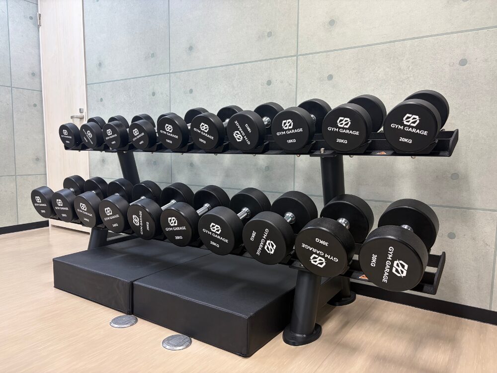 仙台店ではダンベルを1kg〜30kgまで設置しております。