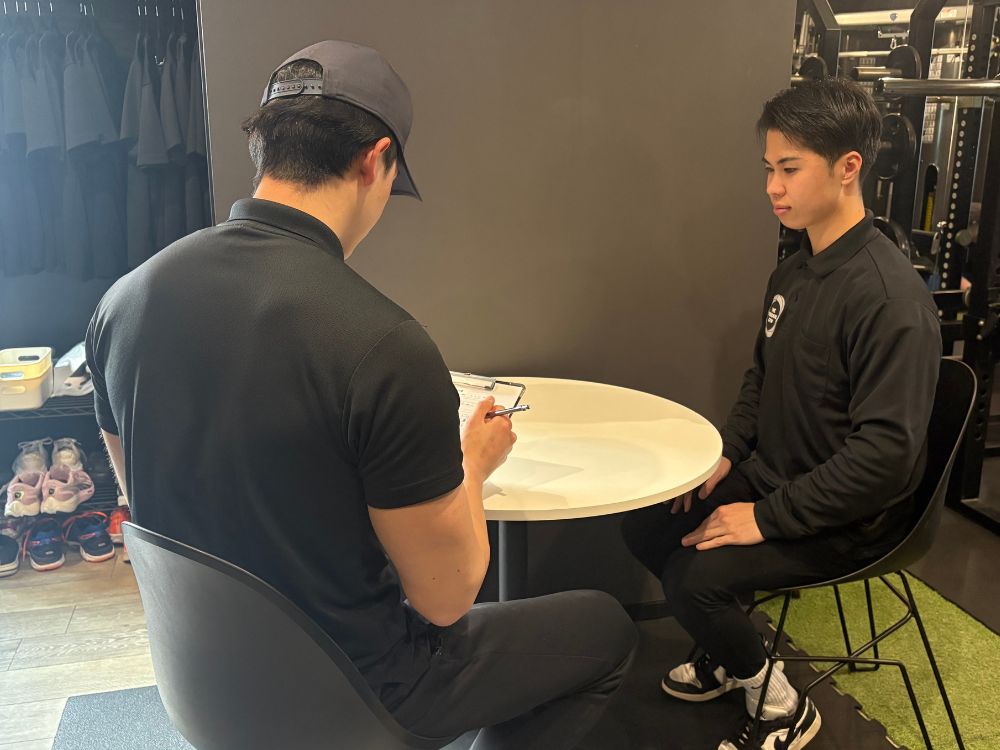 体験当日は最初に丁寧なカウンセリングを行います。体型のお悩みや運動経験、生活習慣などをヒアリングし、「何のために通うのか」を明確にします。痩せたい、姿勢を良くしたい、筋力をつけたいなど、曖昧な状態でもOK。トレーナーが一緒に目標を整理します。