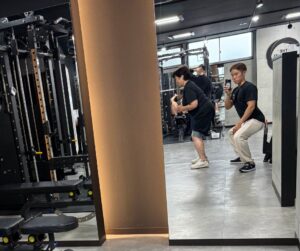 ですが、THE PERSONAL GYM 金沢店ではトレーナーの二塚さんが毎回しっかりサポートしてくださり、時には岡本さんも励ましてくれるので、いつの間にか「自分一人ならここで休んでるな」というところを超えて、1.5倍くらい頑張れていると感じます。