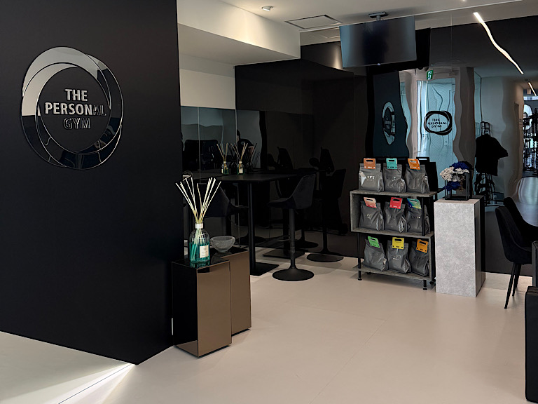THE PERSONAL GYM(ザ パーソナルジム)覚王山店の店内は白や黒、