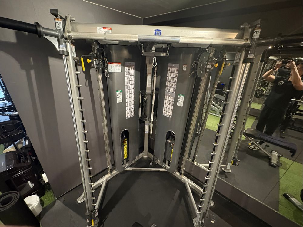 フリーのスクワットは初心者の方には少し難易度が高い種目だと思います!それに比べスミススクワットは軌道が固定されていて安定しているのでしゃがみ込む時のバランスが摂りやすいことから、初心者様でも取り入れやすい種目になります!!